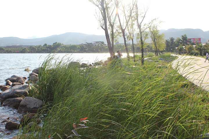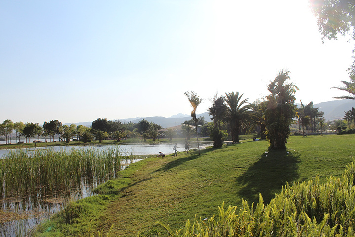 弥勒不大,我们开车从高速下来,没多久就到了湖泉酒店。酒店附近的环境特别好,有一片湖,绿植特别多,度假村即视感。
