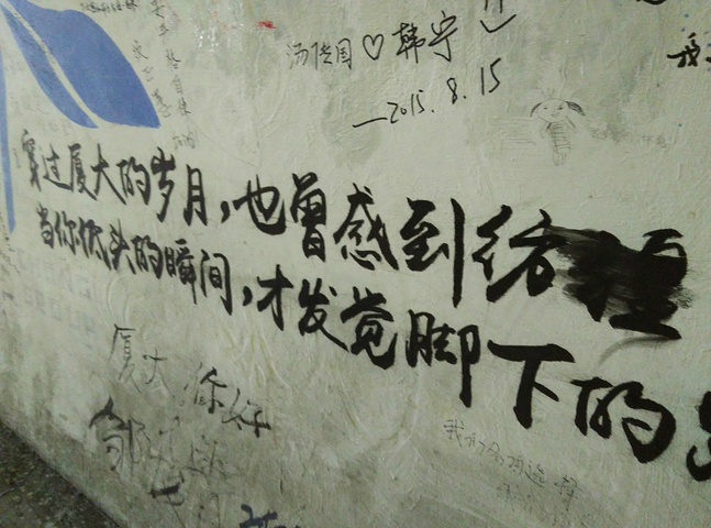 早听说厦大的美, 但这个本来没抱太多幻想的地方却给了我最大的惊喜. 坐112路公交车直到厦大门前, 游客凭身份证入内, 进去后真不知道要从哪个方向看起, 满园的游人和学生, 可能这个时候学生还未放假, 或许是放了假有些远路的学生并未回家, 厦门给我留下的最深刻印象就是植物多, 这个校园再次印证了这点. 一直向前, 看到一个大餐厅,以为是传说中的芙蓉餐厅,可惜不是, 再向前, 人越来越少, 也仿佛离开了校园, 进入了公园或是大自然, 古树, 有历史感的建筑, 看了湖泊, 又好像到了热带雨林,大学校园见过一些,可还是不敢相信竟然还有这样纯自然, 纯自然美的校园, 天天被商业化包围的我们看到自然就像卸下了千斤重担, 迫不急待要融入, 要感受 . 当即想哪怕此行只来了厦大, 也是值了. 绕到了一家咖啡厅, 很大的一家, 价格不比商业街的便宜, 歇了脚,问了去芙蓉隧道的路, 结果距隧道不远就看到了芙蓉餐厅, 想想也是, 同用芙蓉的名, 理应相依相偎, 遗憾没有饥饿感, 只得直接进了隧道. 千米隧道也是被多少人传颂了的, 涂鸦能涂得感人, 复古, 时尚, 怀旧......也是佩服, 其实那里何止是个抒发胸臆的地方, 更是一种情怀,一段岁月的见证, 不由一阵阵的感动.游人们各种拍照, 想必大家也在怀念自己的上学时光吧. 厦大校园除了美, 发现最多的还有咖啡厅, 隧道里就见了不下5家. 走出隧道, 尽头处还有几家精致的小店, 售卖厦大纪念品什么的, 这个校园俨然成了厦门不可或缺的景点了. 顺着大路走, 大概10分钟就能看到公交站, 坐20路又回到厦大处, 去了南普陀寺.