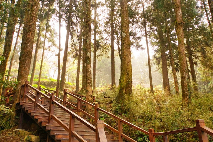 塔山步道,早期为阿里山住民采集箭竹之步道,入口位于阿里山森林游乐区内著名景点姊妹潭的妹潭旁,步道总长约3,500公尺,单程约3.5公里去程为上坡,回程为下坡,来回约四小时,终点为塔山顶。步道为木栈道及碎石阶梯组成,沿途为碎石道,有部分路段以美桧为栈道舖设,沿途可经过柳杉林、桧木林及铁杉林,景观资源十分丰富,步道采架空方式,以防止游客践踏树根,保护林木。经过阿里山森林铁路祝山线段,以天桥方式横跨其上,可观赏森林火车蜿蜒而过。而塔山顶更是云起雾涌,起伏于山与树之间,可欣赏阿里山森林游乐区全景,还可以眺望到玉山群峰,景观优美,有如仙境一般。