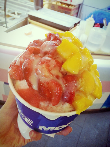 5层楼卖的甜品,这么大一个才20软妹币,上面铺满了草莓和芒果,料多到盒子都快装不下了……【手机摄】