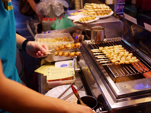 晚上决定去饶河夜市,这是在台北去的第一个夜市,宾馆服务员建议我们坐火车去夜市,我们想想还是捷运吧