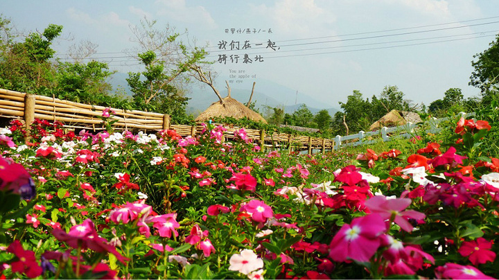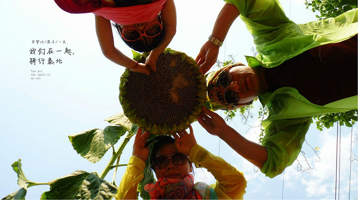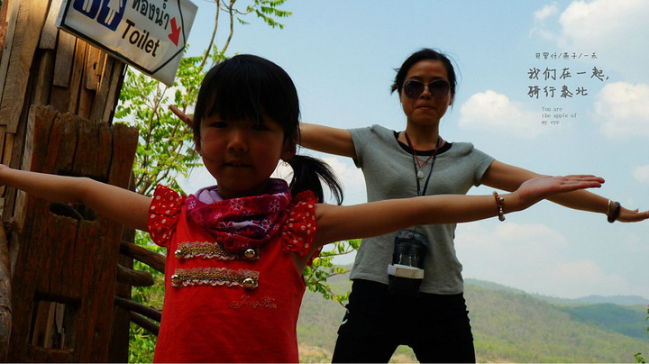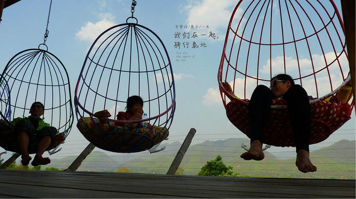 喝点水,吃点虾片,休息下,我们走下主题屋,下面种着一片片的草莓还有花,向日葵,当然远处是灰朦朦的,因为烧山了吗,本来应是一派田园的风光,不过感觉还是很好,因为主人的细心,一些细节处,我们都能体会到,主题屋边上是个花园,里面有几个爱心状的铁架,屋里放在笔和挂件,让来过这里的人们写上自已想写的字,用锁把挂件锁在上面当然锁是要去他们那里买滴,我媳妇竞想出了一个鬼点子,我们挂件写上,"骑行泰北 一禾,燕子,巴罗什"她竞找了个红头绳把挂件系爱心铁架上,真是会过日子的媳妇呀,我们给祖国人民丢脸啦,太寒酸啦,呵呵呵,,...
