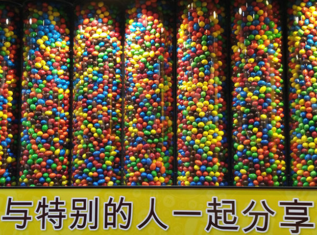 据说这条路上有Eason的店,但是我们没找。不过在这里我们两个人找到了我们都喜欢的地方——上海的m&m’s专卖店。这个专卖店里所有的商品都与m&m’s有关。包括各种纪念品玩具以及生活用品等等。在这里我觉得自己回到了孩时,对我来说这里的一切都充满了吸引力。来到这里,找到了我好久不曾发现的童心。