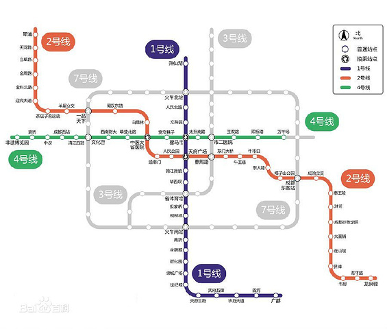 到达成都东站后,可以立即换成地铁二号线,可以到达天府广场。之后在天府广场换乘4号线可以到达宽窄巷子等景点。可以在附近找旅馆住。附成都地铁图。
