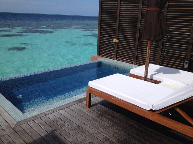 小型无边泳池,我当初就是相中这个才选莉莉岛的!