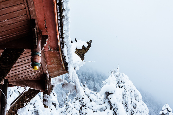 接引殿的一角,望着渐行渐远的雾,内心是哭泣的,反正一个人到处拍,连工作人员都被妖风吹走,此刻我怀疑自己的体重了,,