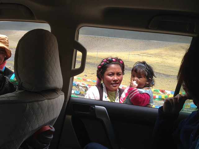 快到卡若拉的时候,有个妈妈抱着孩子过来要吃的。给了一个什么东西记不清了~