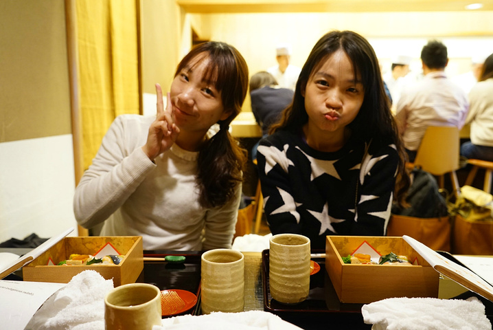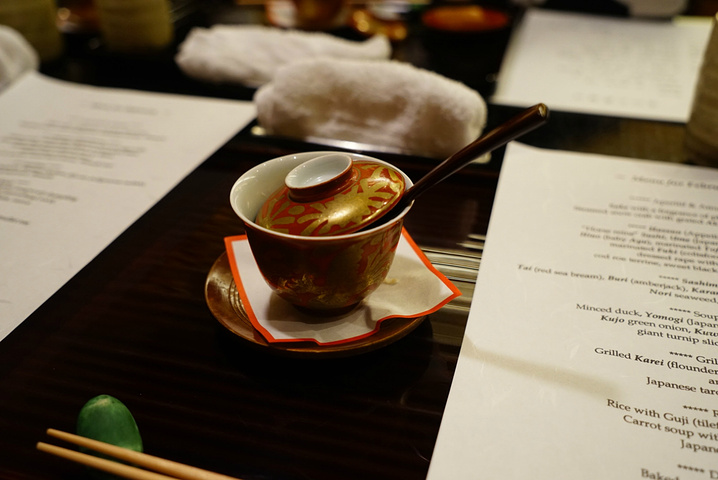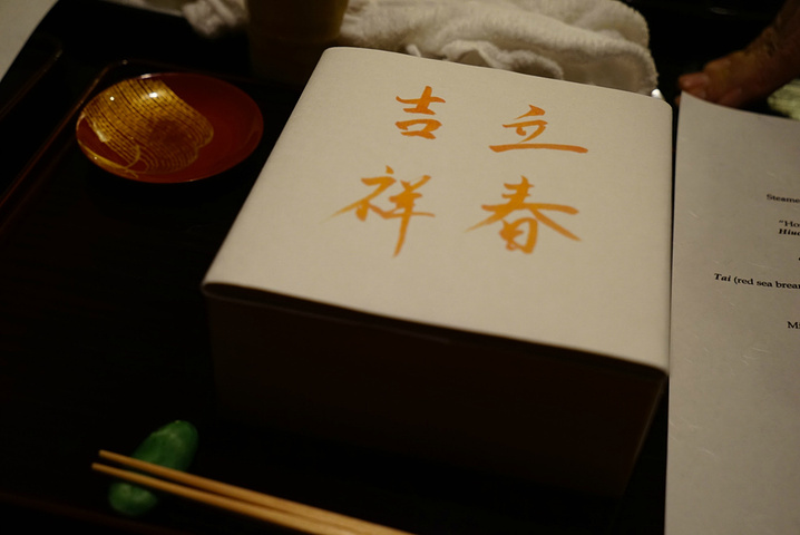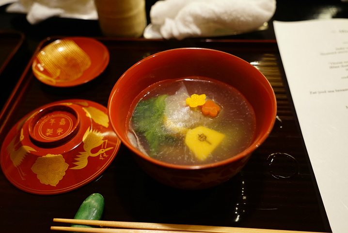 菜品会根据当季的食材来决定的,我们来的时候是梅花季特供菜单。所以菜式和食材都和梅花有关。我看到有些旅客写的是枫叶季的菜单,真想把每一时节的菜单都试一遍O(∩_∩)O哈哈~
