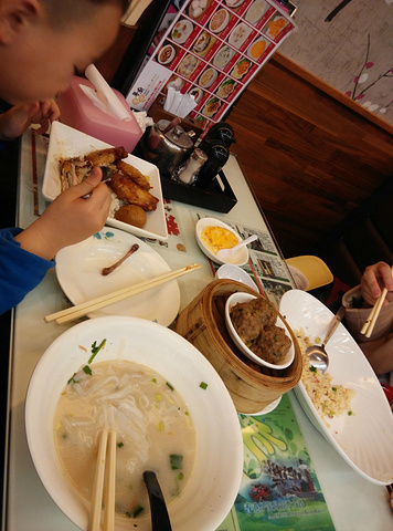 第二天早餐后,退房乘车赶往深圳湾口岸入境香港,入境安检游客还是蛮多的,大约近1个小时通过,按照高德地图的指点直接乘坐城巴B3X(开往屯门市中心)-红桥下车--乘坐九巴260X 新港中心下车 ,步行500米抵达酒店,办理入住。简单休息收拾一下,带孩子去用午餐。香港第一餐选择了楼下的香港仔鱼蛋粉这一家,进店小乐就睡着了,老大独自享受美食。