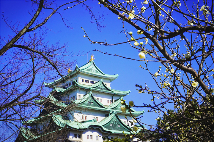 冬天的梅花,春天的樱花,绽放时万分艳丽,有写繁华如梦的错觉,和城堡掩映成趣,是名古屋城最漂亮的时候。