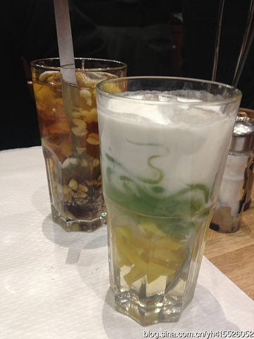 不过他们的一种甜品饮料还是可以,比较新颖,让我这个在意大利面朝黄土春来植栽的农民认识到这个甜品中的甜字只是一个运用了反夸张修辞方式的形容词而不是一个常规的状词,真是甜蜜蜜。 就这玩意儿,麦子说我这是什么三色冰。。。