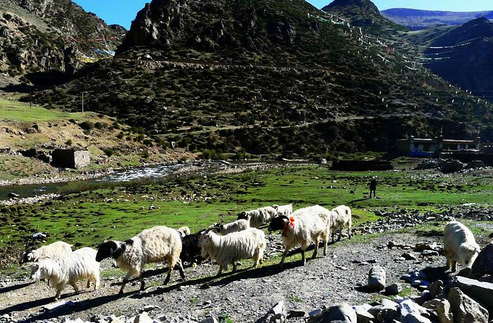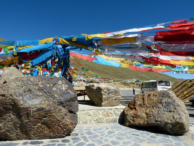 摄于海拔5230米的米拉山口。米拉山口,地处拉萨市到墨竹工卡县与林芝地区工布江达县的分界上,这里是拉萨——林芝旅游线上的一个休憩之地。米拉山口海拔5013米,站在山口,山风劲吹,蓝天白云下,五彩经幡在大地与苍穹之间飘荡摇曳,连地接天,将藏民们虔诚的愿望传达上苍神灵。