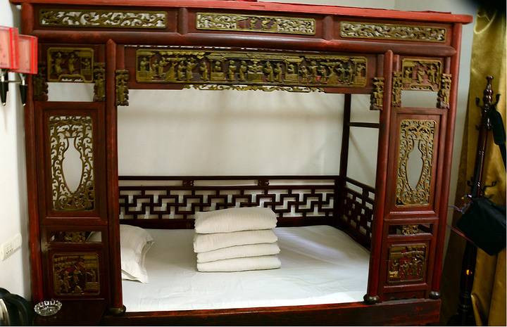 晒晒睡的雕花大床。酒店据说今年刚装修。据说很多朋友看了我的帖子去了这里,条件属于很一般的旅店,雕花大床只有一张。我当时380元每晚是五一所以比较坑爹,平时我觉得100-160还算正常价格,老板人倒是真很热情,至少包接送,典型的浙江生意人的性格,网友们根据情况选择就好。