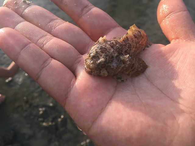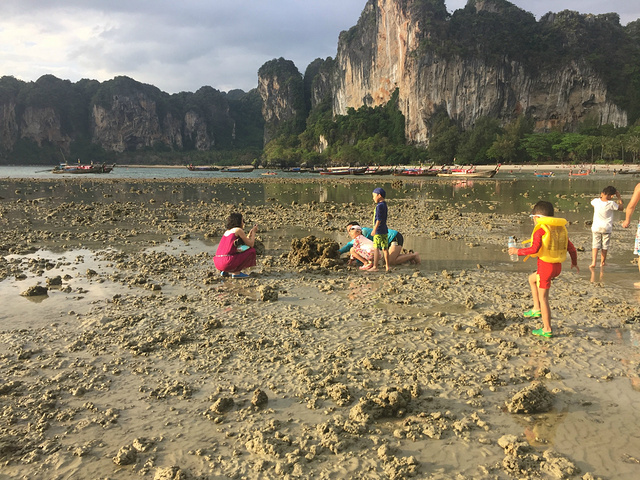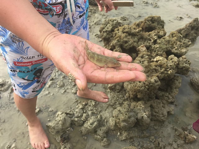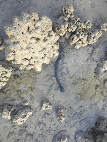 我们逛了一圈回到西海岸,居然发现退潮了!这下就好玩了,之前游泳的时候就发现有很多地方比较磕脚,现在都露出来了,居然是一大片的珊瑚礁,很多人都围在边上,这下好玩的事情就多了,超级多人都在抓搁浅的鱼,虾。我们也抓了不少
