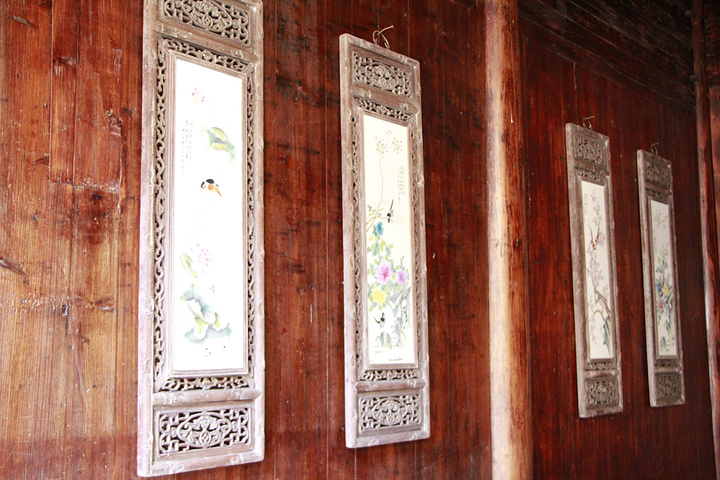 厅堂内装饰的壁画。画架的雕刻也是不简单。