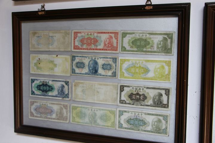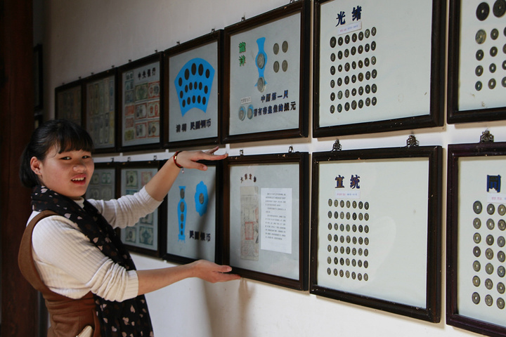 内墙展示了近代多个朝代、年代的流通钱币。