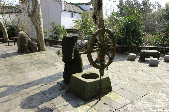 出了门,沿着池边小径来到一个小院子,这是井。后面是下棋的四座。左边还有处很别致的小景。