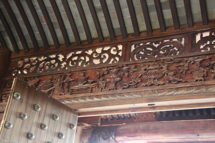 进门了。这样的门木雕看得让人只剩赞叹了。而这只是建筑本身的一部分,并没有被列为什么要紧的陈设物。