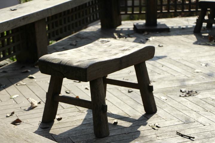 就是这小木凳。怎么说呢,倒有种特别舒适的气息。凳面也不是全平的,用现代的话说几乎是符合人体工程学的。凳子挺大,一个人坐很舒畅。