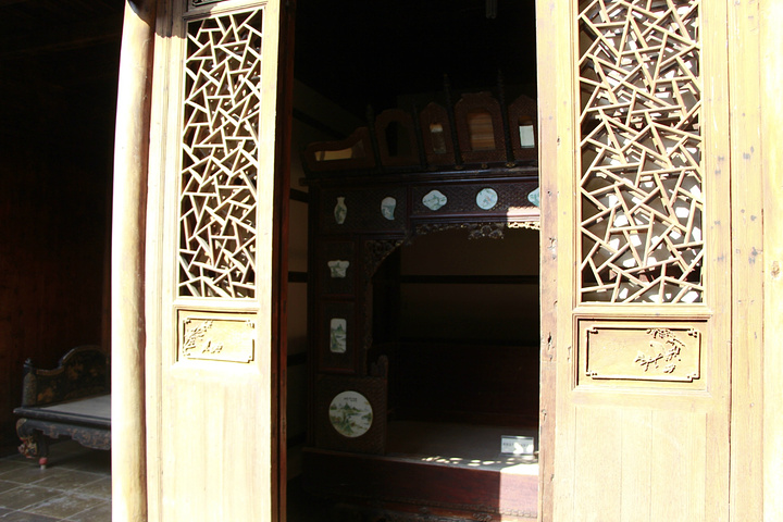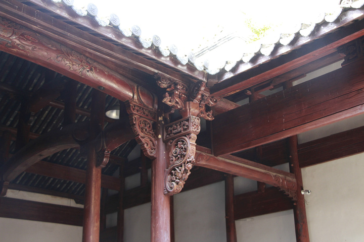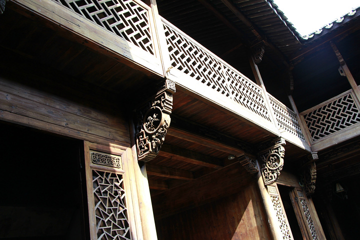 院内。一楼的厅门开的大,看似院子很小,实际楼上一边就有三四间厢房,共四边。中国传统木建筑,整栋楼造完都是用不上一颗钉子一类的结构的。我们最常听到的就是榫这个结构单位。还有其他非常复杂讲究,包括会活动的一些建筑单元,有兴趣的人可以细细研究下,大有文章!牢固又安全,既是工具又是艺术品,每个角落都能展现着屋主的品味与富贵程度。古人的智慧远比我们传承的博大精深。