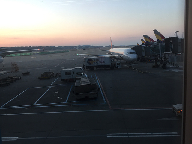 经过一个多小时的飞行到达了首尔,转机后准备前往美国。