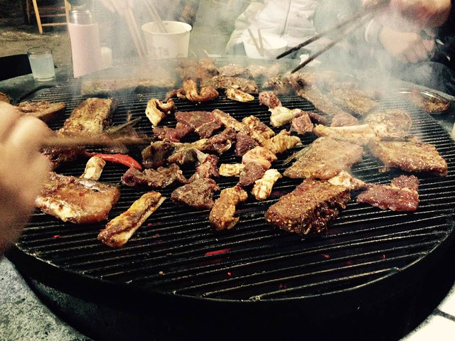 霸气的火盆,长长的烤签,小伙伴们盯着上面的肉,清口水就是直往外涌的节奏。
