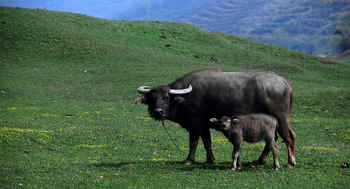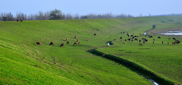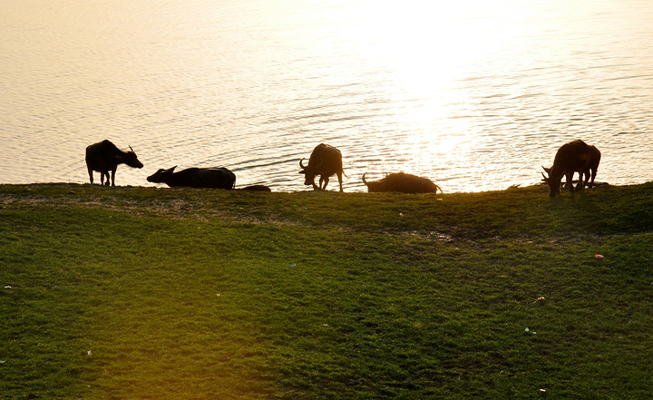 下午,我们一行来到了澧水江边,观看“百牛过江”特色景观。一到江边,一行人就异常兴奋,早晨初升的太阳给江面镶上了一道橙黄色的金边,“来了,来了……”牛群下水时,母牛和小牛紧随其后。数分钟后,带头牛率先下水,群牛登岸的场面瞬间掀起现场高潮,摄友们拿出相机啪啪啪地记录下这个激动人心的一刻。我们倒是激动,这些牛儿却非常“淡定”,有的安逸的享受早餐,有的在江边自由奔跑,丝毫不受影响。