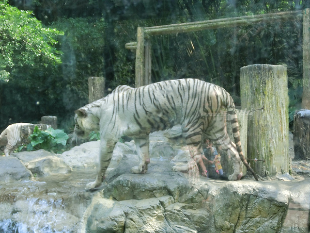 国庆期间每隔30分钟会有白虎跳水,说白了就是前面水中央掉快肉,然后老虎跳起来抢肉吃
