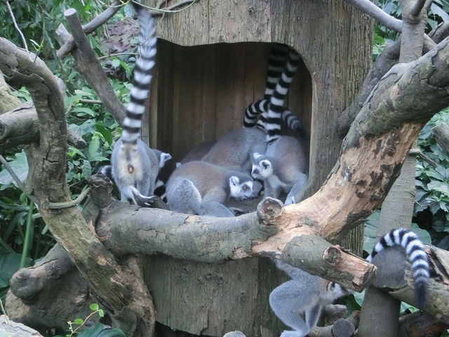 出来侏罗纪就看到马达加斯加狐猴,长长的大尾巴超级可爱,它们异常活泼,旁边会有饲养员喂苹果,这时候你就会看到它们一大群蜂拥过了,没错这就是拍照的好时机。。。