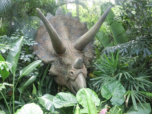 小火车时间大概40分钟一趟,结束后就来到侏罗纪,说实话这是整个园区我认为最无聊的地方,恐龙都挺假的,而且有小孩的最好不要进去,看到好几个小孩是被恐龙的叫声吓哭的。