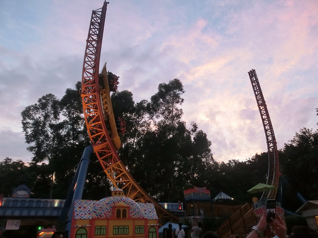 也许是因为我们第一个项目就选择了垂直过山车导致第二个超级大摆锤我们是全程睁眼欣赏景色的