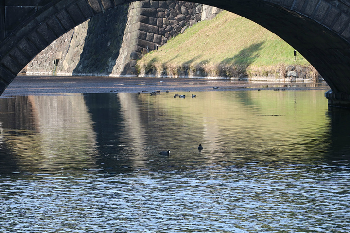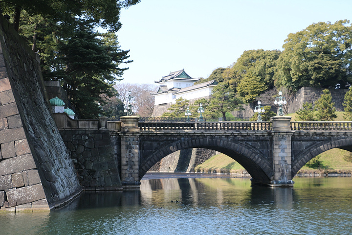 前面那条便是二重桥。上面白色的哨楼便是1945年日本天皇宣布无条件投降的地方。
