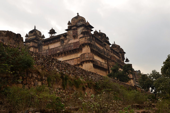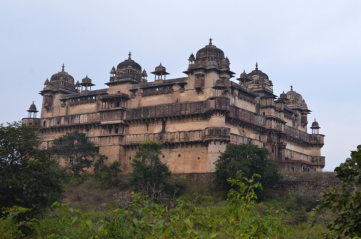 在1501年,国王 Rudrapratap Singh就在奥恰城堡中建造了一些宫殿与纪念碑。穿过城堡大门,是一个大的庭院,穿过庭院就会进入Raja Mahal ——国王的宫殿。离国王宫殿几步之遥的迦汗基尔宫是当地人为莫卧儿王朝皇帝贾汗季到奥恰的一次长达仅一夜的访问而建的。从宫殿出口出来后,有一座经典的莫卧儿王朝风格的花园,花园中一个小小的住处和皇室浴泉,这里是Rai Parveen的住处。关于这里有一段故事:Rai Parveen是一个妓女,但被阿克巴皇帝(贾汗季的父亲)看中,皇帝想让她搬去阿格拉,她做了两行诗问皇帝,大意是:“为什么皇上想吃别人吃过的饭?”后来阿巴克就让她回家了。