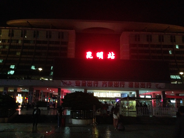 来不及吃晚饭就坐上机场大巴(25元1人)赶往昆明火车站。