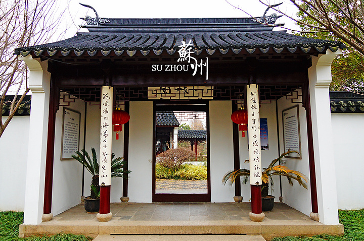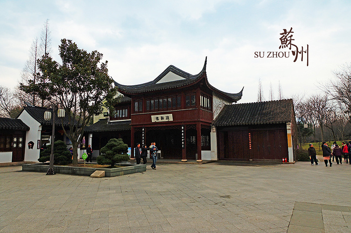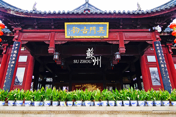 从桥往西进入枫桥景区。迎面是景区的主要建筑,我不知道名字,匾额上写的好像是“吴门古韵”。