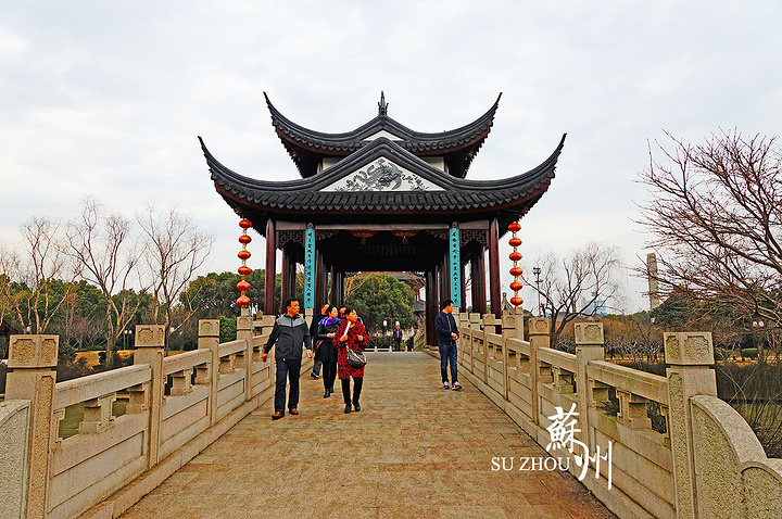 从寒山寺西门出来,西边有个江中小岛,那上面是“苏州枫桥景区”。其实这两者就挨在一起,但被分成了两个部分,寒山寺门票20块,枫桥景区25块。