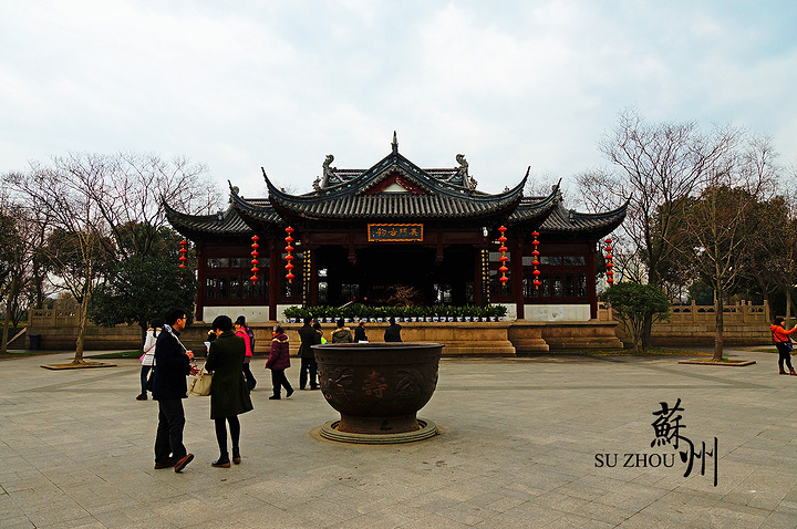 说实在的,这座建筑样式美观詹雅,但一眼就看得出是仿古建筑,所以怎么看都觉得不如寒山寺里的建筑好看。好处是,这里人少。