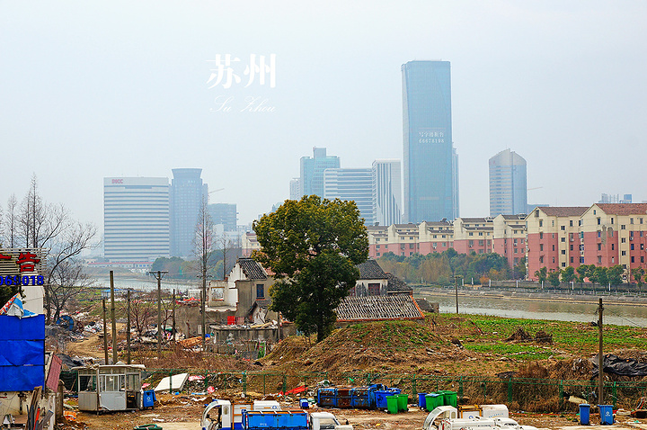 寒山寺之行到此结束,我开始沿何山桥向东,准备返程。这张图是随便拍的,景色平常,但站在桥上凝望远处,暮雨苍苍,形色茫茫,尘世仿佛很近,又仿佛很远。
