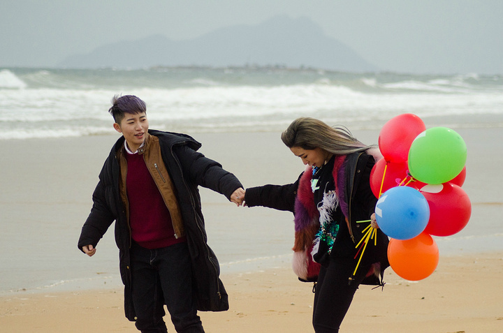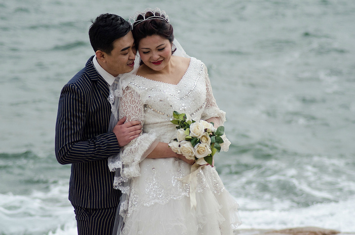 看样子,这一对夫妻很恩爱的,为了补充以前的海滨婚纱,特地来补拍的。