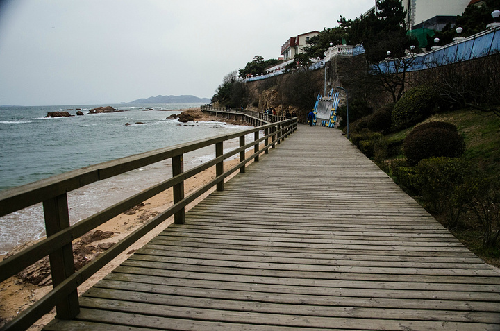 一边是木栈道,一边是大海,步行其间突然想到了诗人《青岛微风》里面的优美的诗词叹言!
