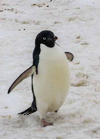 阿德利企鹅(学名:Pygoscelis adeliae)在企鹅家族中属中、小型种类,体长72-76厘米,具有攻击性。它适于海洋中的游泳生活,翼成鳍状,变为游泳器官。阿德利企鹅的食物主要是鳞虾、乌贼和海洋鱼类。它们喜集群活动,群体可达几十只到上百只,在繁殖期形成1雄1雌的配偶关系,并集大群在陆地繁殖。是南极最常见的企鹅。