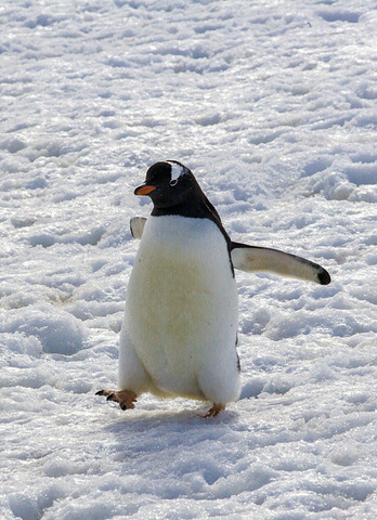 巴布亚企鹅(学名:Pygoscelis papua),又名白眉企鹅、金图企鹅,体形较大,身长约60-80厘米,重约6公斤,眼睛上方有一个明显的白斑,嘴细长,嘴角呈红色,眼角处有一个红色的三角形,显得眉清目秀。因其模样憨态有趣,有如绅士一般,十分可爱,因而俗称“绅士企鹅”。