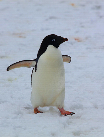 帝企鹅主要分布在南极大陆位于南纬66-77度之间的许多地方,例如靠近威德尔海的科茨地和靠近罗斯湾的维多利亚地,都有相当数量。但是我们竟然在去布朗断崖(brown bluff)南纬63.5度地方的冰架上看到它。还是孤独一只!