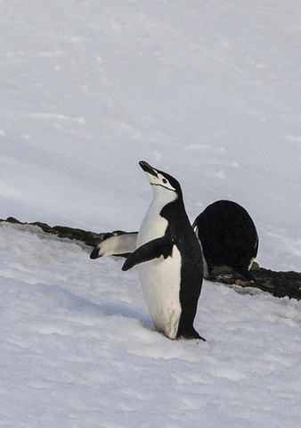 大批帽带企鹅。据说它们仰天呼唤是呼叫伴侣,求爱。也有说,他们仰天长啸其实是他们长时间孵蛋,又寂寞又饥饿时的一种发泄。