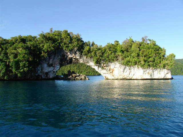 途径帕劳著名的《恋人桥》——是一座天然形成的石拱桥