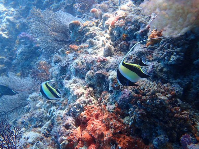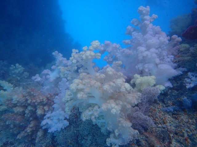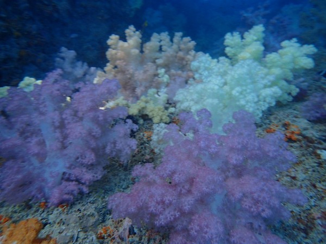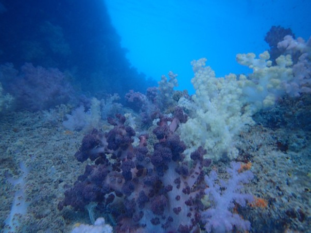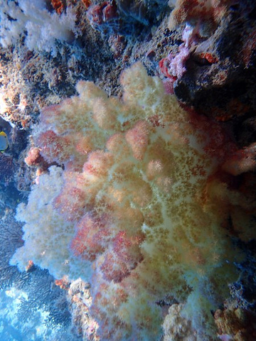 接着我们来到了,帕劳著名景点的《软珊瑚区》这里的珊瑚比硬珊瑚去的珊瑚色彩鲜艳,一眼望去深不见底,各种的颜色珊瑚,依附着岩壁而生在软珊瑚区水流有一点急,如果没有力气时,可以靠边浮潜着,这样可以帮助平衡还可以节省力气,还有要注意软珊瑚区的珊瑚有些是有毒性的,所以要注意脚别踏在珊瑚上。