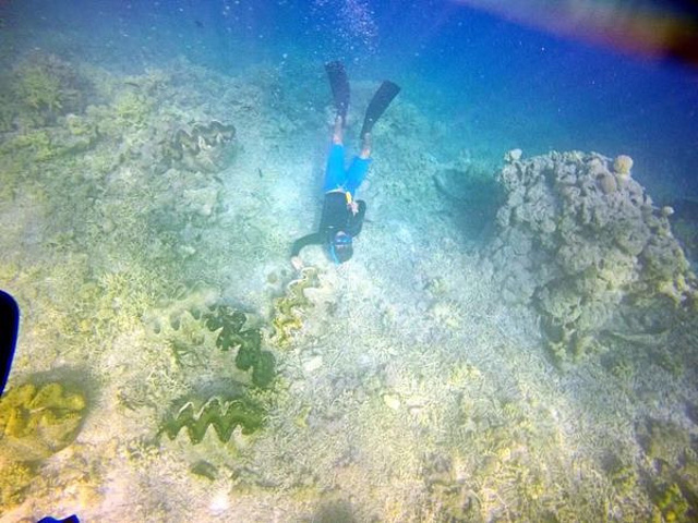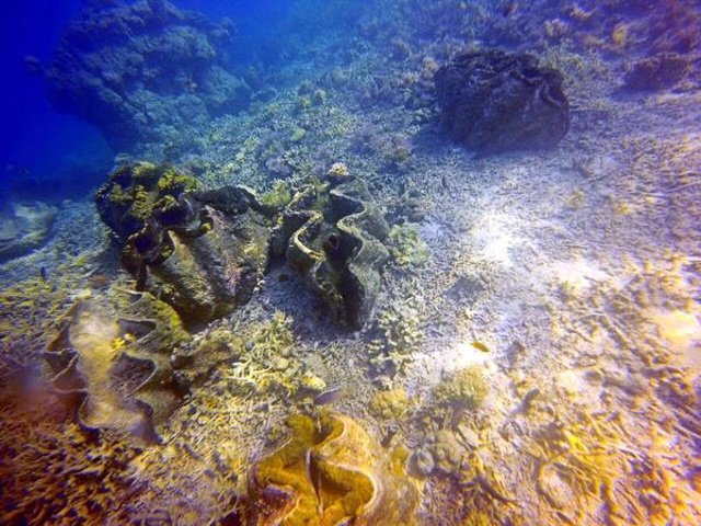 两个恩爱的大砗磲 ,后面是成片的小砗磲,希望那些偷采的人手下留情啊~!