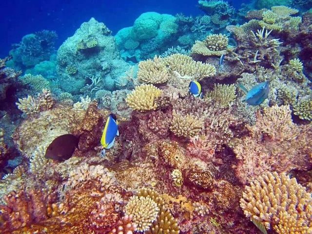 珊瑚随着水流任意的摆动,成群结队的各种颜色的鱼群,场面绝对震撼