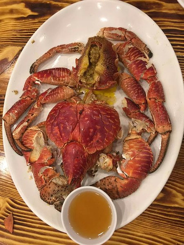 这个最贵了,帕劳有名的椰子蟹,是吃椰子长大的,蟹黄拌饭比较香,还有帕劳鲜美的石斑鱼!
