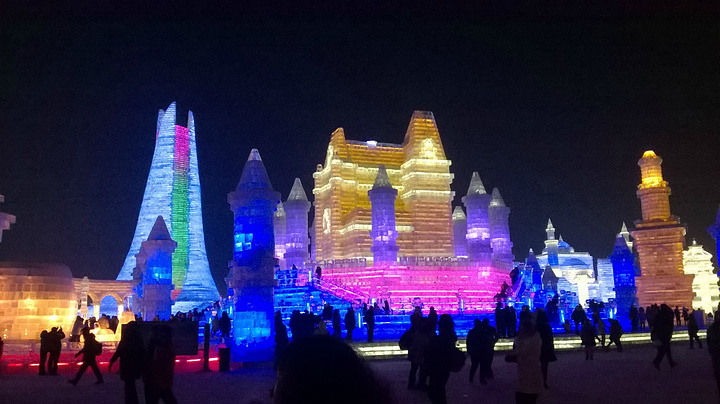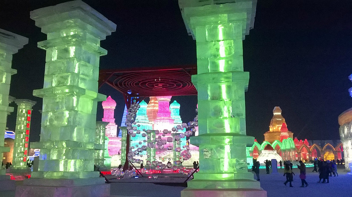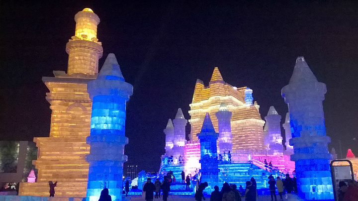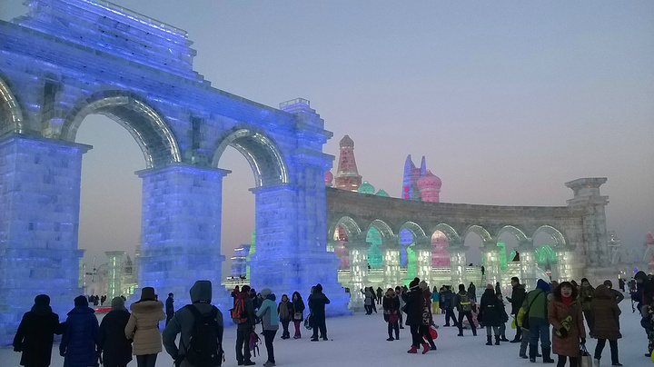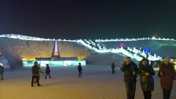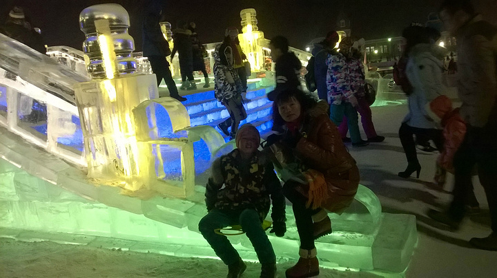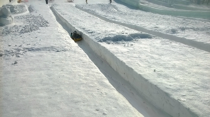 去北方不仅看雪,看的是历史,是奇迹,是冰雪文化.夜幕下的哈尔滨,谁没有看过了. 冰雪节是国际性,已举办了16届,这届更加精彩和丰富,娱乐和观赏更是提高,好不期盼飞翔过去的,但也冷,提前加件衣服,又带上一件,看官要注意保暖.中午11点开园,公交站就在我住宿旁,方便之极,利用这段时间,又步入早晨的中央大街,寒冷和愉快并行的,人稍多,但不拥挤,在阳光照耀下建筑更加灵动,心情更加开心,格调更丰富,街面兜售旅游产消息的老人,小孩,男的 女的,引人注目,又是一道美丽传播线.保护完整的老式建筑让人惊叹和赞叹,不同建筑风格难道不是历史的见证啊? 做在驶向太阳岛公交上,心早已飞向冰雪大世界了,横跨松花江大桥时,整个松花江冰冻一体,洁白纯洁,好气派啊,到了,到了,孩子唤呼踊跃,我也激动滴,下车迂回几下就看见了我的冰雪,印入眼帘,白白的,耀眼的,冰块垒起高高的建筑物,踩在全是雪的地面,感觉爽,爽快,急急刷身份证进入,网上购买便宜了,雪芒症又开始了,全是雪,全是白,全是明亮的,眼睛承受不下,寻找第一目标,300米大滑梯,坐上去,滑下来,才感觉惊心动魄,魂不守舍的意境,急速的下行,身体的抖动,心脏超负荷的承受,不知何时落地,如同悬在空中,太刺激了,太怕人了,只有落地才是真实的.做了一次就不敢做了,去玩雪圈,雪撬,可还不过隐.又去玩了一次大滑道,再次体验那种味道了,爽了.这时人也越来越多了,也开始排队的,冰雪世界范畴并不大,几个区域交融在一场,站在高处,一片雪白,景色甚美,所有冰雪项目我们可是一一扫尽,尽情玩耍,可惜表演节目反而放弃了,无办法得学会放弃了,那个叫开心,来这儿玩最好中午11点前来,不用排队,先玩大滑道,其次是高山雪圈,再根据需要玩其他项目,否则人多了就失去玩的意义了,华灯初放,冰雕亮起来了,好美了,照亮了整个天空和心灵,什么城堡,长城,洒瓶,人物冰雕太让人迷惑了,晚上冰雪温度是低了,阵阵凉意而起,由其是脚冷了,做好保温工作,整整8小时游玩,满足了,带着诚意回家吧.